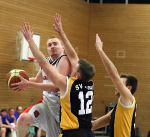 Erfurt. (23.Mrz.13/ y4u) Vor der Saisonabschlussparty mussten die Männer des BC Erfurt noch einmal auf das Feld, wollten mit einem Sieg den für einen Aufsteiger überragenden dritten Platz verteidigen und es wurde ein gelungenes Vorspiel. Die Engel-Schützlinge ließen nichts anbrennen, schlugen vor rund 300 Zuschauern in der Halle des Erfurter Sportgymnasiums den Tabellenfünften, Filtralon Baskets Stauf, verdient mit 79:67 und feierten ihren 17. Saisonsieg. „Wir haben es wirklich spannend gemacht, Stauf hat uns nichts geschenkt, aber ich freue mich riesig über den Sieg. Es war gelungener Abschluss einer fast perfekten Saison, ich bin stolz auf das, was die Mannschaft diese Saison geleistet hat“, erklärte BCE-Coach Michael Engel. Die Hausherren taten sich allerdings zu Beginn etwas schwer, der gewohnt gute Start, mit dem die Erfurter diese Saison so manchen Gegner überrascht hatten, blieb aus. Die Gäste machten die ersten Punkte, legten nach dem Erfurter Ausgleich immer wieder vor, holten sich so das erste Viertel verdient mit 16:20. Doch dann besannen sich die Gastgeber auf ihre Stärken. Aus einer sicheren Defense punkteten sie mit Fastbreaks und drehten innerhalb von drei Minuten mit zwölf Zählern in Folge das Ergebnis zum 28:20. Die Erfurter bauten anschließend ihre Führung weiter aus und lagen zur Pause mit 48:32 in Front. Aber die Gästewaren noch nicht geschlagen, starteten nach dem Seitenwechsel ihre Aufholjagd, gewannen den dritten Durchgang 30:13 und waren fünf Minuten vor der Schlusssirene bis auf zwei Punkte (65:63) heran. Doch die BCE-Männer zogen das Tempo noch einmal an, spielten ihre Vorteile aus und machten mit dem 18:15 im Schlussviertel alles klar. Erfolgreichster Werfer der Partie war Niklas Kollmann mit 21 Punkten.
