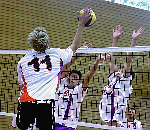 Erfurt. (23.Sep.12/ y4u) Es war mal wieder Derbyzeit in der Halle des Erfurter Sportgymnasiums. Nach dem man mit Ansage die letzte Saison in der Insolvenz beendet hat, schlägt der ehemalige Bundesligist VC Gotha die nächsten drei Jahre zwangsweise wieder in der Regionalliga Ost auf. Der Erfurter VC empfing in seinem ersten Heimspiel die Schulz-Schützlinge und unterlag glatt in drei Sätzen. Die Gastgeber sind immer noch auf Trainersuche und ebenso wie die Gäste dabei sich als Mannschaft noch zu finden. So war es auch nicht verwunderlich, dass beide Teams im ersten Satz meist von Fehlern des Gegners lebten. Die Erfurter hatten ihren ehemaligen Teamkollegen Elias Rose als Wackelkandidat in der Annahme ausgemacht, schlugen immer wieder auf ihn auf und starteten mit einer 4:2-Führung in die Partie. Doch Gotha glich zum 10:10 aus, ging selbst mit 11:14 in Front. Aber auch die Erfurter ließen sich nicht abschütteln, kämpften sich auf 18:18 heran, leisteten sich aber im Schlussspurt einige Fehler zu viel, zudem brachte Gotha Reichel für Rose ins Spiel und damit mehr Sicherheit in die Annahme. Einen Satzball konnte der EVC noch abwehren, dann ging der Satz mit 23:25 an die Gäste. Der zweite Satz war eine schnelle Beute der Gothaer, über die Stationen 2:6 sowie 5:11 setzten sie sich klar mit 15:25 durch. Die Hausherren meldeten sich im dritten Durchgang noch einmal zurück, machten einen Rückstand von sechs Zählern wett, aber zum Satzgewinn reichte es am Ende doch nicht. Gotha gewann 22:25 und feierte anschließend den ersten Saisonsieg.