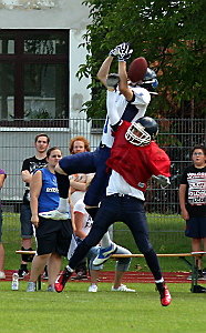 Erfurt. (08.Jul.12/ y4u) Wie alle Teams vor ihnen, mussten auch Hanau Hornets ohne Punkte die Heimreise aus Thüringer Landeshauptstadt antreten. Die Erfurt Indigos beendeten mit einem ungefährdeten 39:6-Erfolg gegen die Hessen die Regular Season der Oberliga, blieben im vierten Heimspiel ungeschlagen. Sie behaupteten die Tabellenführung in der Nordstaffel und sicherten sich damit das Heimrecht für das Play-off-Halbfinale. Gegner wird am 12. August der Tabellenzweite der Südgruppe sein, derzeit belegen die Bad Kreuznach Thunderbirds den begehrten Play-off-Platz. Die Hausherren legten vor rund 300 Zuschauer, einer davon war Erfurts OB Andreas Bausewein, einen Blitzstart hin. Sie marschierten gleich nach dem Kickoff mit drei Passversuchen in die gegnerische Endzone und erhöhten per PAT zur 7:0-Führung. Die Erfurter waren nicht zu bremsen, wirbelten mit attraktivem Passspiel die Defense der Hornets gehörig durcheinander. Sie waren bis zur Halbzeitpause mit zwei weiteren Touchdowns erfolgreich, bauten so ihren Vorsprung auf 19:0 aus. Im dritten Quarter wechselten die Gäste ihren Quarterback, Jugendspieler Robin Jüngling feierte einen Einstand im Männerbereich und bereitete den Touchdown von Borjan Sobot zum 19:6 vor. Danach übernahmen wieder die Indigos auf dem Sportplatz Essener Straße das Kommando. Sie konterten noch vor dem Schlussquarter zum 26:6. Auch im letzten Durchgang schalteten das Team von Frank Becker keinen Gang zurück, erhöhte mit zwei weiteren Touchdowns zum auch in der Höhe verdienten 39:6-Endstand. Für die Touchdowns der Indigos waren Jan Nickel, Steven Gössinger, Tilman Brütsch, Hannes Joachim und Steffen Willing verantwortlich, während Alexander Wyrfel sowie Kicker Christoph Knauft per PAT punkteten.