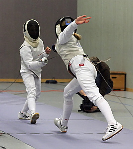 Saalfeld. (24.Jun.12/ EnGarde) Abschluss und gleichzeitig Höhepunkt der Saison für den Nachwuchs der Degenfechter des Fechtzentrum Erfurt EnGarde waren an diesem Wochenende die Thüringer Meisterschaften in Saalfeld, sechs junge Erfurter gingen an den Start und kämpften um die Medaillen, am Ende konnte viermal Edelmetall in die Landeshauptstadt geholt werden, darunter ein Meistertitel. Diesen Titel sicherte sich Lea Freye (11). Sonst Spitzenfechterin mit dem Florett, wagte sie ihren ersten Ausflug zu Degen, und zeigte, dass sie auch mit der für sie unbekannten Waffe umgehen kann, dank der guten fechterischen Grundlagen fiel die Umstellung nicht schwer. Nach souveräner Vorrunde focht sie sich bis ins Finale. Hier traf sie auf Julia Morgenroth (TuS Osterburg Weida), Dauerkonkurrentin auch im Florett. Nach ausgeglichenem Anfang konnte sich Freye etwas absetzen und setzte sich am Ende mit 10:6 durch. Nachdem sie den Titel im Florett im Mai noch verpasste, krönte sie die Saison jetzt mit der Goldmedaille im Degen. Lucas Haupt (Jahrgang 2002) konnte sich bei den Herren bis ins Finale der besten acht vorfechten, bei seinem zweiten Degenturnier konnte er einen respektablen sechsten Platz erkämpfen. In den anschließenden Mannschaftskämpfen holte er sich in einer Kampfgemeinschaft mit dem PSV Weimar sogar noch die Bronzemedaille. In der Altersklasse der A-Jugend (1997-1995) schickte Erfurt mit Tim Büschel und Wulf Deutschendorf gleich zwei Medaillenkandidaten ins Rennen. Beide konnten ohne Probleme in den Direktausscheid einziehen, Deutschendorf kam allerdings nicht über das Viertelfinale hinaus und wurde Fünfter. Tim Büschel fand im Halbfinale seinen Meister, er unterlag dem hochgewachsenen Cornelius Petersen (Altenburg), welchen er in der Vorrunde noch schlagen konnte. Dies bedeutete die Bronzemedaille und als zweitbester Thüringer den Vizemeistertitel. Im Anschluss an die Einzelwettbewerbe fanden die Mannschaftkämpfe statt, da mit Stefan Perko ein Erfurter krankheitsbedingt ausfiel, holten sich die beiden Starter Enrico Sourisseaux vom FSC Jena mit ins Team und fochten sich souverän bis ins Finale. Beim Kampf um Gold standen sie der Kampfgemeinschaft Cottbus/Weißwasser/Saalfeld gegenüber. Nach großem Kampf mussten sie sich mit 41:45 geschlagen geben, freuten sich aber trotzdem über die Silbermedaille, als beste reine Thüringer Mannschaft können sie sich damit auch als Meister fühlen. Am Sonntag folgten die Wettbewerbe der B-Jugend (1999 u. 98). Hier trat mit Aaron Deutschendorf ein heißer Kandidat auf den Titel für Erfurt an, allerdings erwischte er keinen guten Tag, der Kaderfechter der nächsten Saison kann mit Platz sechs nicht zufrieden sein. Johannes Rothe wurde Siebenter.